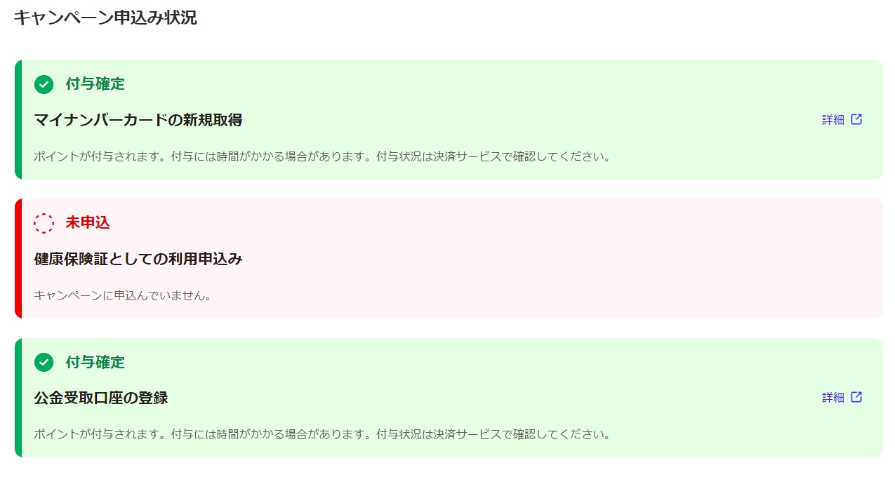 one's way > 未選択 > 【雑記】マイナポイント第2弾(公金受取口座の登録申し込み)を行う 【雑記】マイナポイント第2弾(公金受取口座の登録申し込み)を行う 未選択 2022年07月02日 最終更新日:2022/09/18 なんだかブログを更新するのがもの凄く久しぶりです・・。 以前みたいにまた色々弄った内容を書きたいのですが、そこまで出来ずに・・。 と言うことで今回は表記の通りマイナポイント第2弾(公金受取口座の登録申し込み)を行った話です。 とりあえず申し込みの前に嵌った(グチ・・)ところ。。 〇嵌った点 ・IEが終了しているので、Edgeでしか出来ない (厳密にはChromeでも出来るのですが、当方はFirefox派なので・・) ・公的認証サービスのアプリやマイナポータルAP(拡張機能)の更新が必要 ・アクセスが集中しているとの事で待たされる 〇その他 ・一度(以前に)登録した受け取り先(当方の場合、ICOCA)を変更出来ない・・ と言う訳で、今回は「公金受取口座の登録申し込み」のみ実施。 手順はアプリ等を最新にすれば、そんなに難しくは在りませんでした。 (悩んだ点は、キャッシュカードを元にしたので銀行口座の店番が支店名にしなければならなかった事ぐらいですかね・・) 今回は口座登録のみで、保険証の部分はまた今度・・ 〇キャンペーン申し込み状況(2022/07/02現在) さて、いつポイントが入るかな? でも、ポイント先をICOCAじゃなくて楽天にしとけば良かった・・ ※※2022/08/19 追記 「公金受取口座の登録申し込み」から約1月。 1回目の時にICOCAは翌月の17日~20日にポイント付与されるとの情報で有った為、17日から券売機で確認していました。 結果・・ 今回は18日に(7,500円)付与されていました。 〇付与後のICOCAの様子 残る保健証については、当初マイナンバーに紐づけすると通院時の管理料が高くなるとの事だったので様子見としていましたが、今後引き下げるとの事と、申請しても旧来の保健所の利用で問題ないとの情報があったので別の日に申請をしておきました。 付与日は恐らく来月の中旬以降(17~20)と思われます。 ※※2022/09/18 追記 「健康保健証としての利用申し込み」のポイント付与(+7,500円)の確認に散歩がてら行ってきました。 結果は18日に付与されていました。 これで2回目のも終了ですね。 第3弾はあるのでしょうか・・・? 以上 〇更新履歴 2022/07/02 初版 2022/08/19 「公金受取口座の登録申し込み」のポイント付与情報の追加 2022/09/18 「健康保健証としての利用申し込み」のポイント付与情報の追加 PR