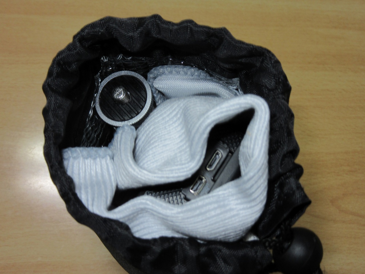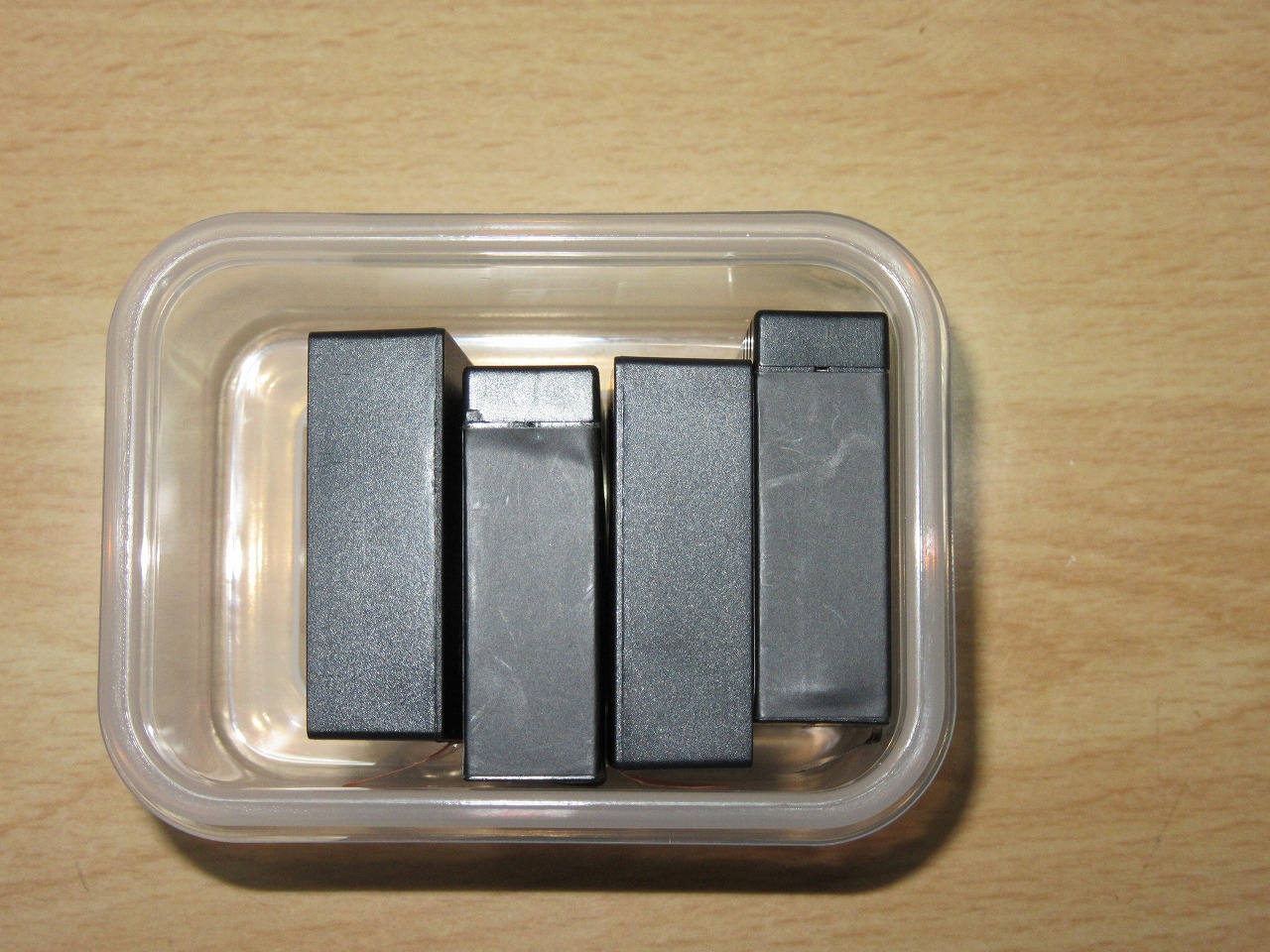 one's way > カメラアクセサリー > 中華アクションカメラで使えた100均グッス 中華アクションカメラで使えた100均グッス カメラアクセサリー 2017年11月04日 最終更新日:2017/12/14 今回は100均で購入したいくつかのものが、思いのほか使えたのでそのまとめです。 その製品ですが、4点紹介します。 0.目次 1.デジカメ用ソフトケース+ミニタッパー(ミニパック) 2.三脚 3.ペットボトルホルダー 4.タッパー(Milion Pack) ※2017/11/11追加 です。 1.デジカメ用ソフトケース+ミニタッパー(ミニパック) まずは、デジカメ用ソフトケースです。 画像は使用しているので多少くたびれ間があります(笑。 元々はアクションカメラのバッテリーが現在4本あるので、その保護の為に使用していました。 しかし、今回更に良い物を見つけました。 それがミニタッパー(ミニパック)です。 というわけで、先にそちらの解説に飛びます。 ○ミニタッパー(ミニパック) 製品名は「ミニパック 角 70m 4p」です。 キッチン系のところにありました。 こちらの製品ですが、SJ4000系のバッテリーを入れるのに中々良いのです。 ○アクションカメラのバッテリーを4本入れたところ 左側に隙間がありますが、もしかしたらもう1本入るのかもしれません。 但し、ケースの角が丸いので入るかは微妙なのと、今は4本しか無いので試せてません。 しかしながら、空いた隙間にクロスやスポンジ等を入れれば丁度良いクッションになるので、これはこれで良いかもと思っています。 ○左にクロスを入れてフタをしたところ これなら雨でも安心ですね。 残念な点としてケースの大きさから、バッテリーにあるベロを上にして(縦には)しまえないです。(フタが閉まりません) その為、上の写真の様に横にする必要があります。 ちなみにアクションカメラ本体(APEMAN A80)にレンズカバー(UVレンズフィルター)を装着した状態でも残念な状態でした。 もう少し深ければ本体収納に丁度良かったのですがね。。 (引き続き底深なものを探してみます) さて、話をソフトケースに戻します。 先ほどのバッテリーを収納したミニタッパー(ミニパック)もすんなり入ります。 私の実運用では、この他にCPLフィルターを一緒に入れて持ち運んでいます。 ○チャックを閉めたところ 一寸膨らんでいますが、クッション性があるのでにもなるので更に持ち運びが安心になります。 バッテリーとは別にアクションカメラ(+ネイキッドフレーム)の組み合わせもソフトケースに入りますので、色違いで購入すれば、見分けがしやすいと思います。 又、元々デジカメ用の製品でソフトケースの内部は柔らかめですのでレンズにも良いかもしれません。 残念な点は、安っぽいのと、製法が少し甘めなところです。 このあたりは100均なのでしょうがないですかね。。 2.三脚 続いては三脚です。 こちらは昔デジカメ用に使用していたものです。 正直安っぽいです。 其の分軽いので使い捨て感覚で使用しています。 3.ペットボトルホルダー 最後はペットボトルホルダー(500mm用)です。 普通はペットボトルを入れて保温する為のものですね。 沢山はさすがに入りませんが、これにアクションカメラ本体やバッテリー、三脚等を纏めて掘り込んで近隣撮影時等に利用しています。 ○実施にアクションカメラ本体、バッテリー(ケース入り)、三脚、クロスを収納したところ (今回アクションカメラ本体はクロスで包んでいます。) ○口を閉めたところ 今回の紹介は一例ですのでもっと使えるグッズや使い方があるかもしれません。 100均は値段が安いのもありますが、このようにアイデア次第で色々応用が可能ですので、試してみるのも良いでしょう。 4.タッパー(Milion Pack) 前回(11/04)の記事では1.ミニタッパー(ミニパック)ではSJ4000系のアクションカメラバッテリーの収納は出来ましたが、本体(APEMAN A80)は残念ながら出来ませんでした。 その為、再度100均で手頃な大きさが無いか探してきました。 今回は次の2種類です。 製品(画像真ん中と右)名は「Milion Pack」と言うものです。 写真左は上記1.ミニタッパー(ミニパック)で、 真ん中はサイズが200ml、右が320mlの製品でどちらも3個1セットで108円(税込み)です。 ○3種類のタッパの比較画像 上:70ml 中:200ml 下:320ml では早速検証してみましょう。 まずは200mlです。 前回の70mlでは本体が収まりませんでしたが、今回は本体だけでなく、 ネイキッドフレームを装着しても、すんなり入ります。 更に、バッテリーも1個は入ります。 ○200mlのケース(上から) UVフィルターを付けた状態でもギリギリ蓋も閉まります。 ただバッテリーを入れても隙間が多少出来ますので、クッション等で工夫する必要がありますね。 ○200mlのケース(横から) 続いて320mlです。 バッテリー4個も余裕で入ります。 (未検証ですが、後2個は入りそうです。) ○320mlのケース(上から) これだけ余裕があれば防水ケース付きでも入るかと思い、試してみました。 ・・・が、惜しい事に連結部分がネックとなり、入りませんでした。 ○320mlで