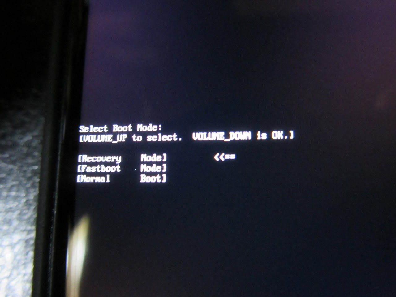 Select Boot Mode [VOLUME_UP to select. VOLUME_DOWN is OK.] [Recovery Mode] <<== [Fastboot Mode] [Normal Mode] |