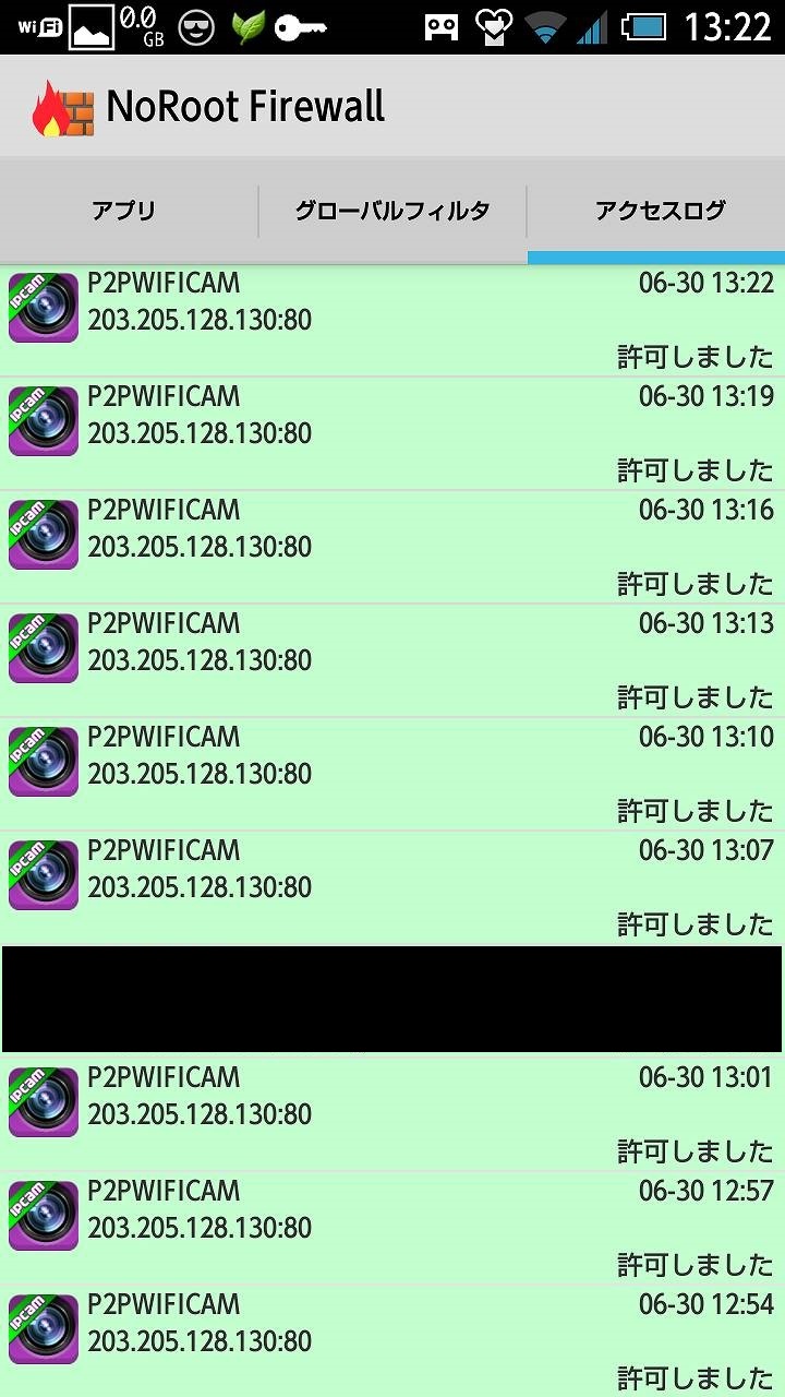 | その他アプリ | NoRootFirewall (Ver3.0.1) |