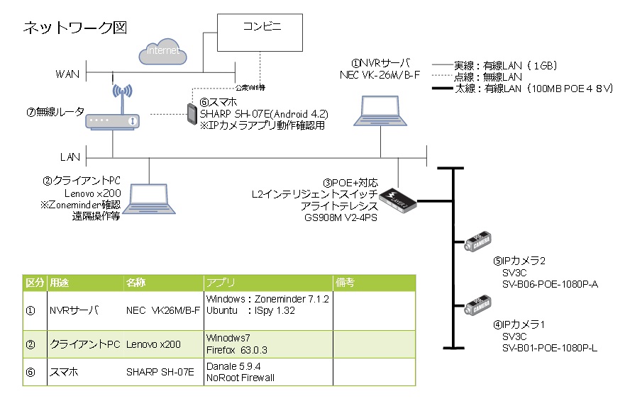 | 接続方法 | 自宅内(Wifi)と野外(LTE及びDocomo公衆サービス) |