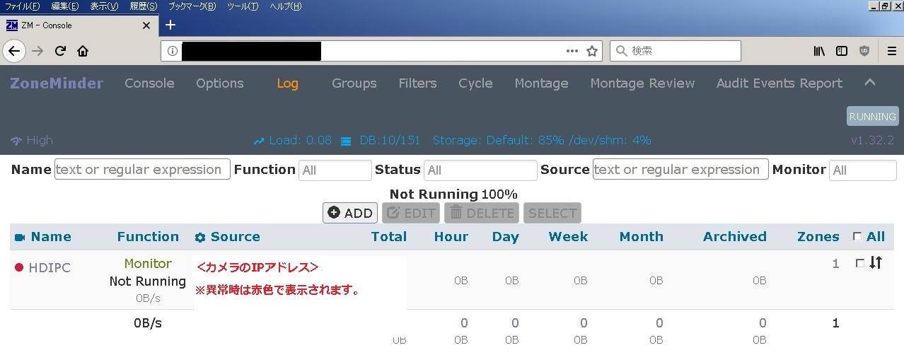 | Options | ZoneMinder全体の設定画面を表示 |