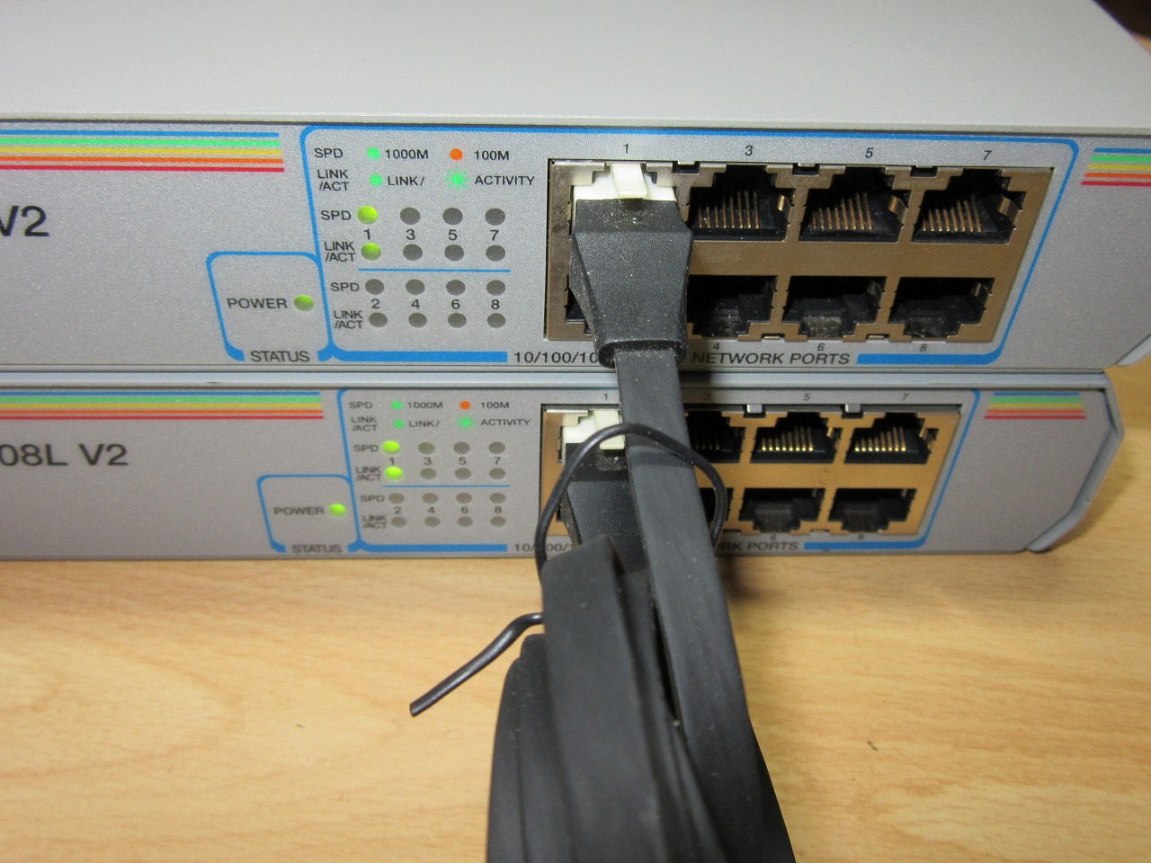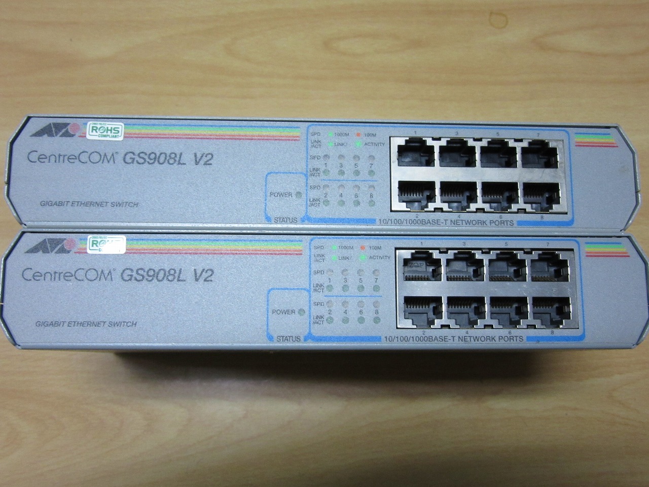 one's way > ジャンクハンター > 1,000円で購入の「Alied Telesis GS908L V2」 1,000円で購入の「Alied Telesis GS908L V2」 ジャンクハンター 2017年11月12日 今日は久しぶりに大阪日本橋に。 いつもの巡回ルートでジャンク屋さん等を何件か回ってきました。 その備忘録も兼ねての記事です。 最初のお店は大阪で最後のジャンク屋と自称されているお店です。 前回行った時より、ジャンクPCの数が減っていました。 でも、時期的にはこんなものでしょうかね? 0.目次 1.解説 2.評価 3.総評 1.解説 残念ながら、前回このお店に寄ったときにあったタブレットのジャンクは無くなってました。 (試しに1個購入しておけばよかったと少し後悔・・) ジャンク商品をいくつか見て、x230i(Core i3)のジャンクが4,980円であったのですが、程度が少し良くなかったので今回は購入を見送りました。 (まぁ、x220もありますしね。)その他、いつもの中古屋を何点か回りましたが、コレと言うPCはありませんでした。 そんな中、別の中古屋でハブ(HUB)のジャンクがあったので1台購入。 製品は、「Alied Telesis GS908L V2」で、一応、ROHSにも対応しています。 写真は2台写っていますが1台は今回購入、もう1台は以前に購入したものです。 値段は1台1,000円(税込)で保証は1週間です。 お店は堺筋通りにある「PCドム」さんで、前回もこちらのお店で購入しました。 以前に1台購入してもう1台と思っていたところです。 簡単な仕様ですが、8ポートのギガハブです。ファンレスで業務用モデルですので頑丈です。 (オプションでラックマウントも可能) その他詳細な仕様はメーカの公式情報をご確認下さい。(マニュアルもあります。) 「Alied Telesis GS908L V2」製品サイト(公式) 但し、中古品ですのでゴム足もありません。 (必要なら何かで代用すると良いでしょう。) 又、電源ケーブル(3ピンアース付き電源ケーブル)も別売(100~200円)です。 お店でも販売していましたが、他の店等で購入しても良いでしょう。 私の場合は家に転がっているので今回は購入しませんでした。 ○電源を入れたところ ○UTPケーブルを接続したところ この後、全てのポートでリンク(緑ランプ点灯)を確認し、問題がない事をチェックしました。 2.評価 ○良い点 ・最新スペックではないが、1,000円で購入できる ・電源が内蔵なので、コンセント周りがすっきり出来る ・金属筐体なので、放熱効率が良い ・ファンレスである ○悪い点 ・金属筐体なので、重量が多少ある(1台800g) ・棚等に置く場合、ゴム足等を別途準備する必要がある(放熱効果向上の為) ・業務用なので、消費電力が少し高い(5.2W(最大8.0W)) 3.総評 既に販売終了している製品ですのでいつまで使えるかは不明ですが、1,000円で購入できるのでちょっとポートを増やしたい時等には便利と思います。 (私の場合は、色々検証環境を作るので・・) 更に欲を言えばマネージメント(管理)ポートが付いたモデルも欲しいのですがね。 後はCISCOも・・・なんですが、値段が流石になので・・・。 以上 タグもどき: HUB ハブ ネットワーク GS908L V2 PR