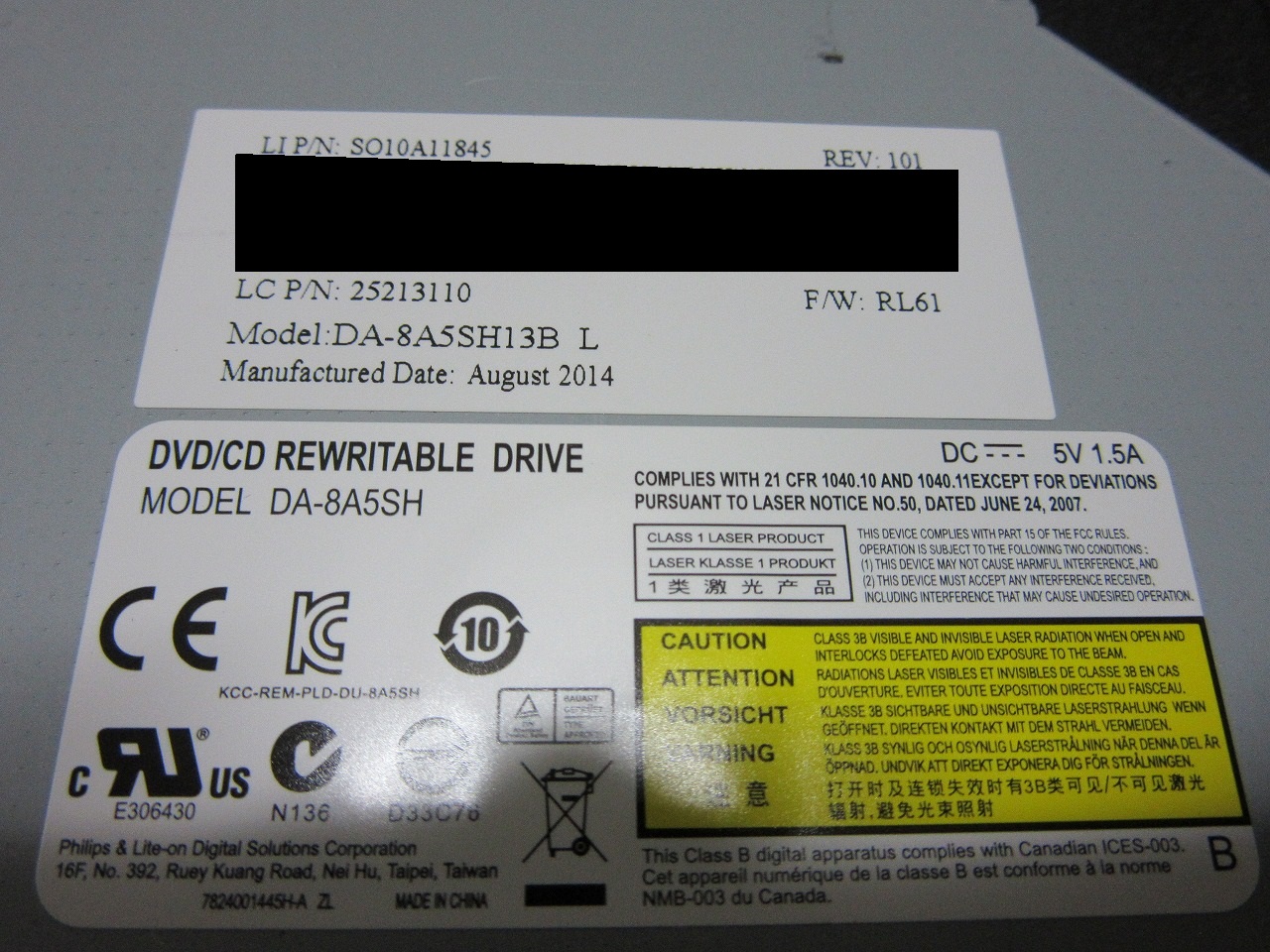 | 最大書き込み速度 | DVD±R:8倍速、DVD±R DL:6倍速、DVD+RW:8倍速、DVD-RW:6倍速 DVD-RAM:3-5倍速、CD-R:24倍速、CD-RW:24倍速 |
