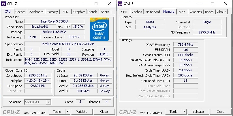 | CPU | 第5世代(Broadwell) 5300U vPro(2.30G/2.9GHz) |