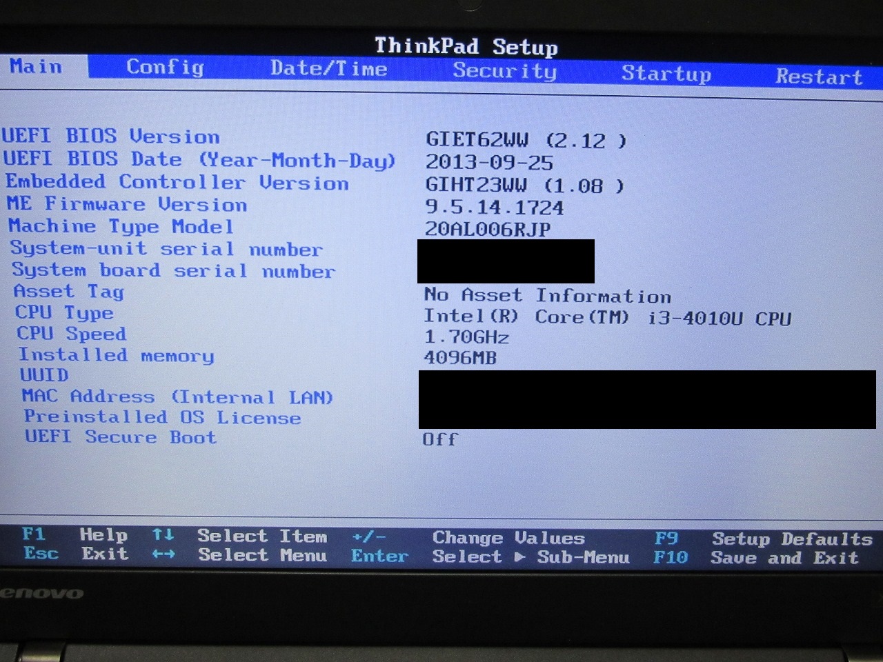 | 機種 | Leonovo Thinkpad X240 |