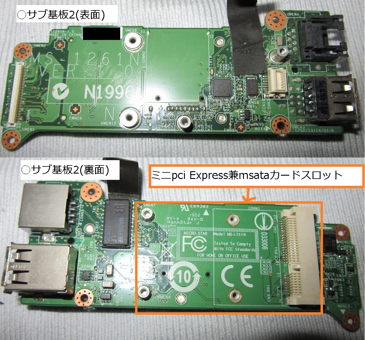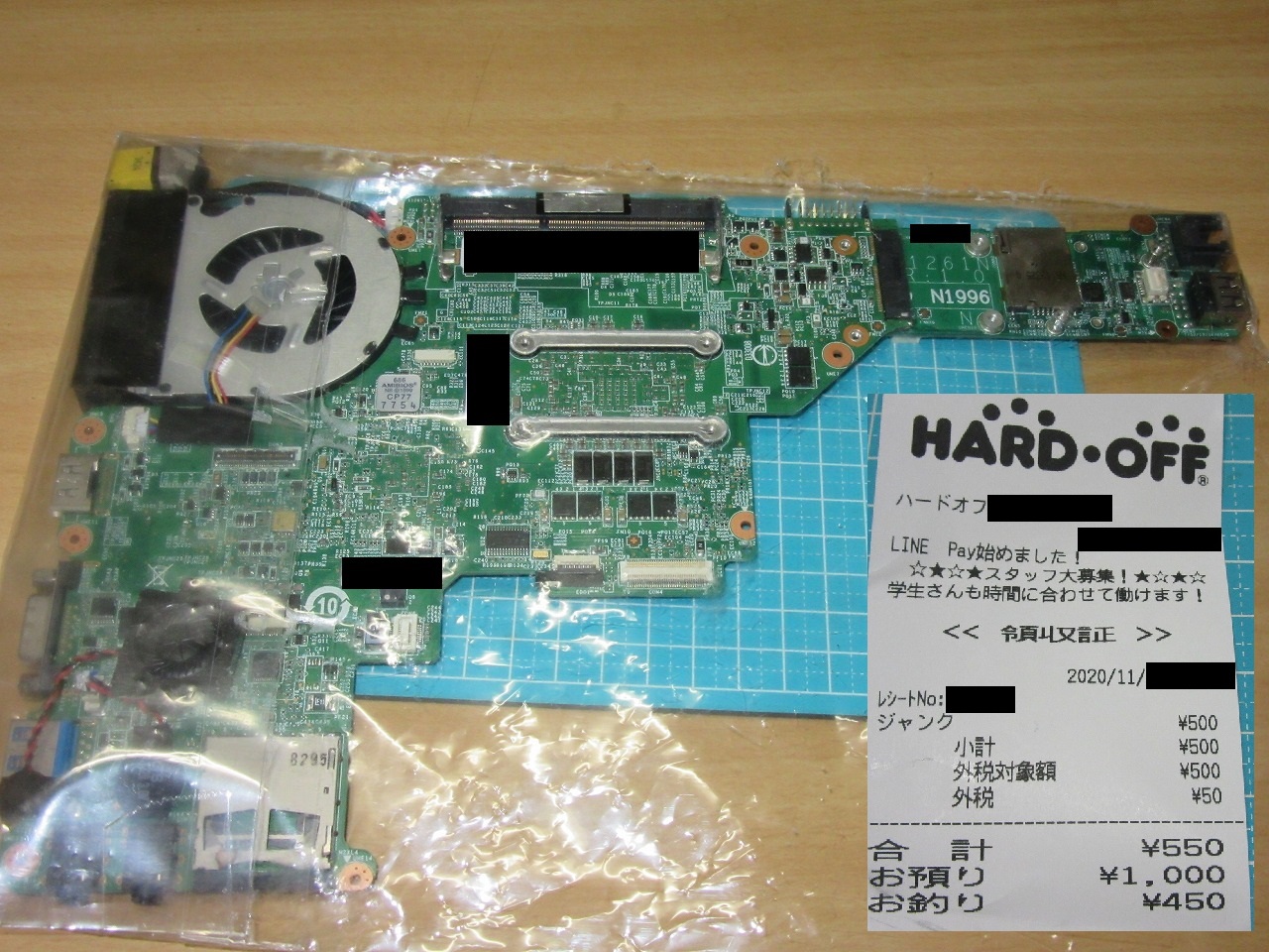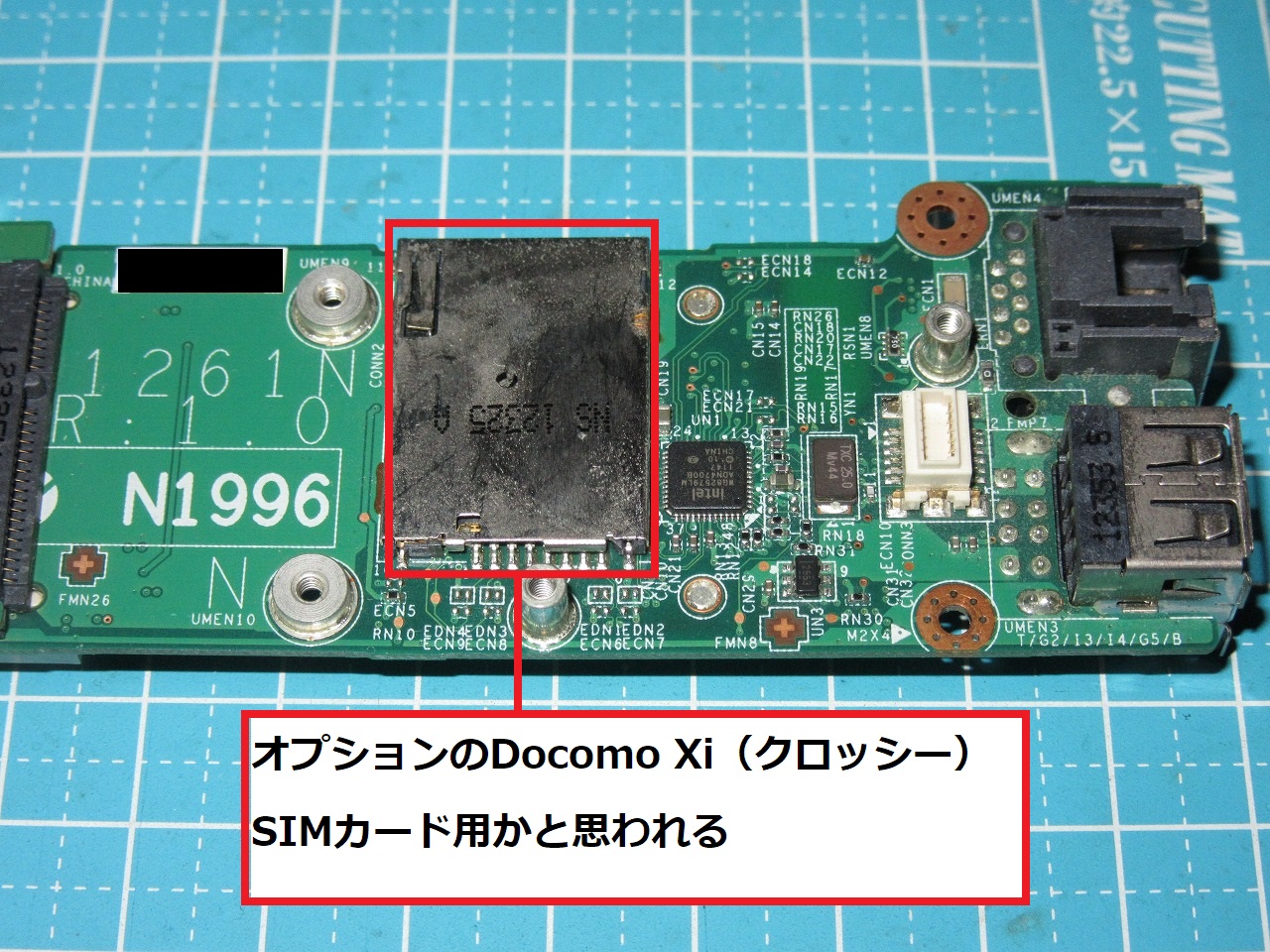 one's way > ジャンクハンター > 【ジャンク】500円で購入のNECノートPC(PC-VK26MBZCF)のシステムボード? 【ジャンク】500円で購入のNECノートPC(PC-VK26MBZCF)のシステムボード? ジャンクハンター 2020年12月22日 最終更新日:2020/12/22 先月に購入したジャンク品の備忘録です。 久しぶりに某ジャンクコーナを回った際、当方にとっては見慣れた特徴的な形状をしているシステムボードを発見しました! 場所はハードオフの青箱(ジャンク品)の中。 〇システムボード(裏面) この特徴的な形状からNECのVersapro VK26M/B系の物では無いかと思い購入してしまいました。 お値段は550円(税込み)です。 〇システムボード(表面) 一応、システムボードに(i5)と記載があるのと、それ以外に電源コネクター端子・CMOS電池・スピーカー・ともう1つ気になる物が付いていたので、購入した次第です。 (丁度、CMOS電池が1台切れていた為) 〇付属品 そして気になる物がこちら。 サブ基盤(正式名は不明で当方が勝手に命名)です。 有線LANとUSB(2.0)x2端子ですが、当方の所持している個体と微妙に異なる部分が・・ おそらくですがオプションであるDocomo Xi(クロッシー)用で使用する、SIMカードの挿入口と思います。 〇サブ基盤(今回入手した物) 〇参考(過去の記事より) ※過去の記事はこちら ・NECノートPC VK26M/B-F(PC-VK26MBZCF)本体分解方法(その3:システムボードを取り出すまで) と言う訳で昔入手した物には実装されていない部分ですね。 (まぁ今さら使うのか?と言うのがあるのですが・・・) このあたりは部品取りとして入手し、実際1台のCMOSバッテリーを交換して使えたのでヨシとしています(笑 残念なのは他の部分も(出来ればジャンクに落ちる前に)見てみたかった・・ 以上 〇更新履歴 ・2020/12/22 初版 タグもどき:NEC PC-VK26MBZCF VK26M/B-F VersaPro 解説 分解 ジャンク PR