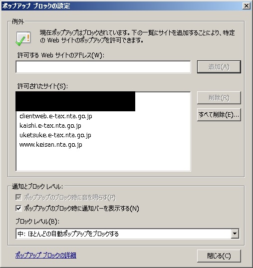 | 備考 | 信頼出来るサイトやポップアップブロック対象外は登録済み |