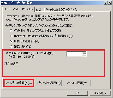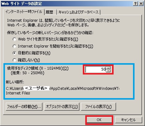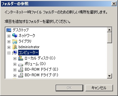| 名前:Cache 値:C:\Users\<ユーザ名>\AppData\Local\Microsoft\Windows\Temporary\Temporary Internet Files |