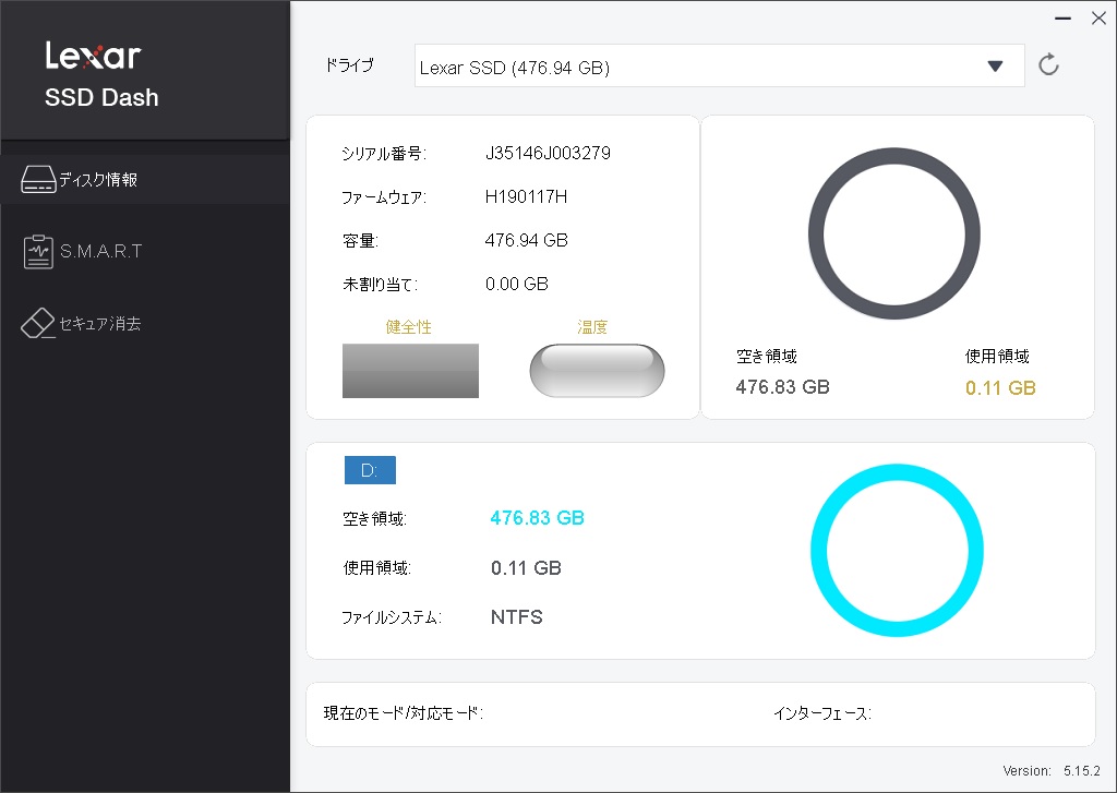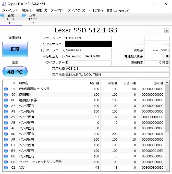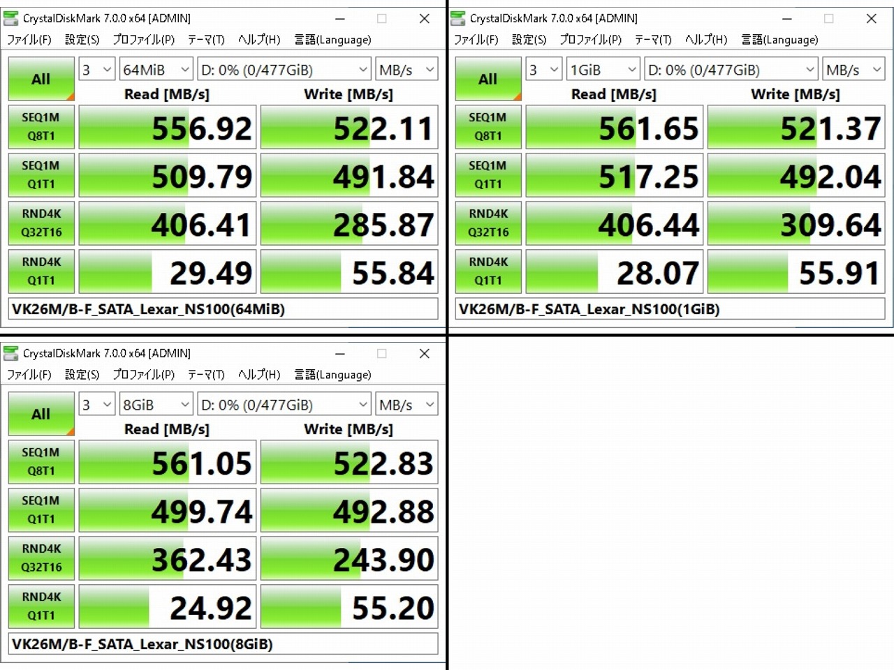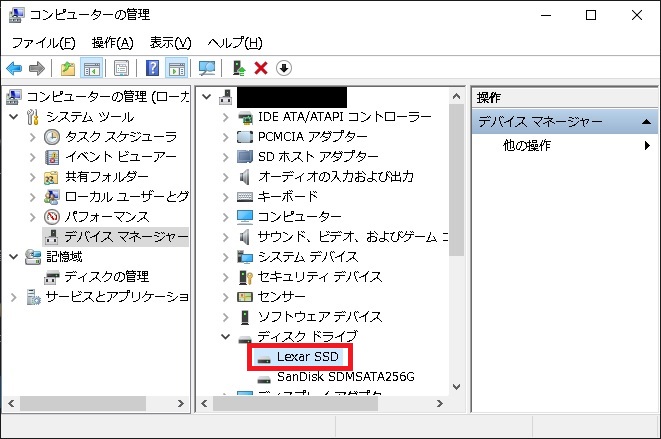 | DISK構成 | (C)Sandisk SDMSATA256G(mSATA) ※システム (D)本製品 Lexar NS100(LNS100-512RBJP) |