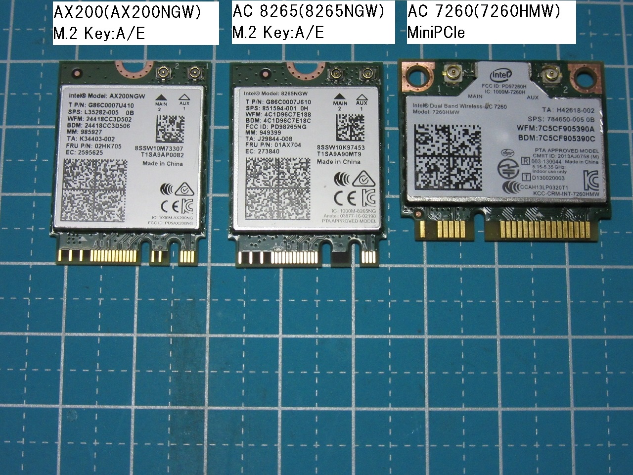 | ① | Intel Wi-Fi 6 AX200 | M.2 | A/E | 5 |