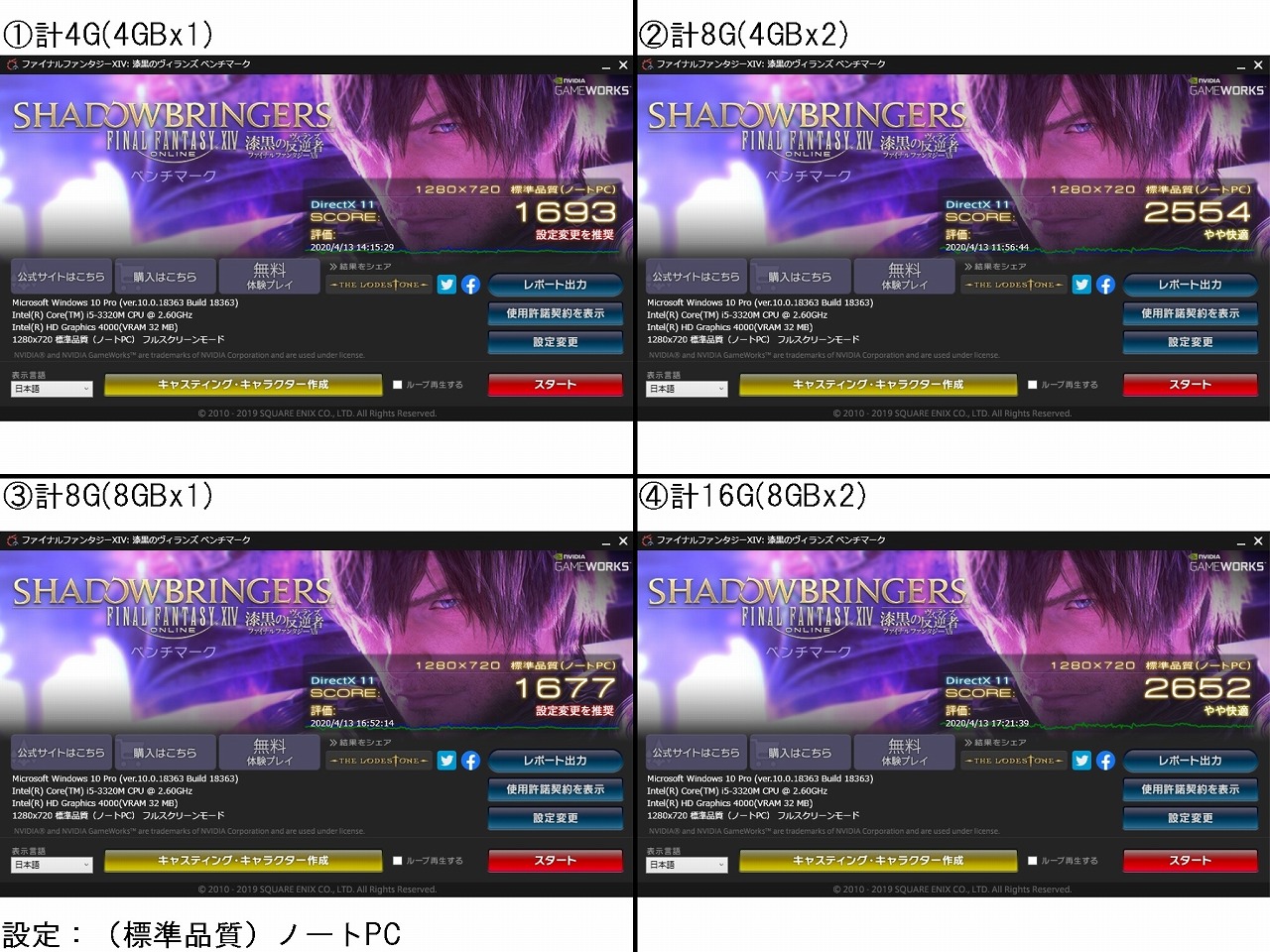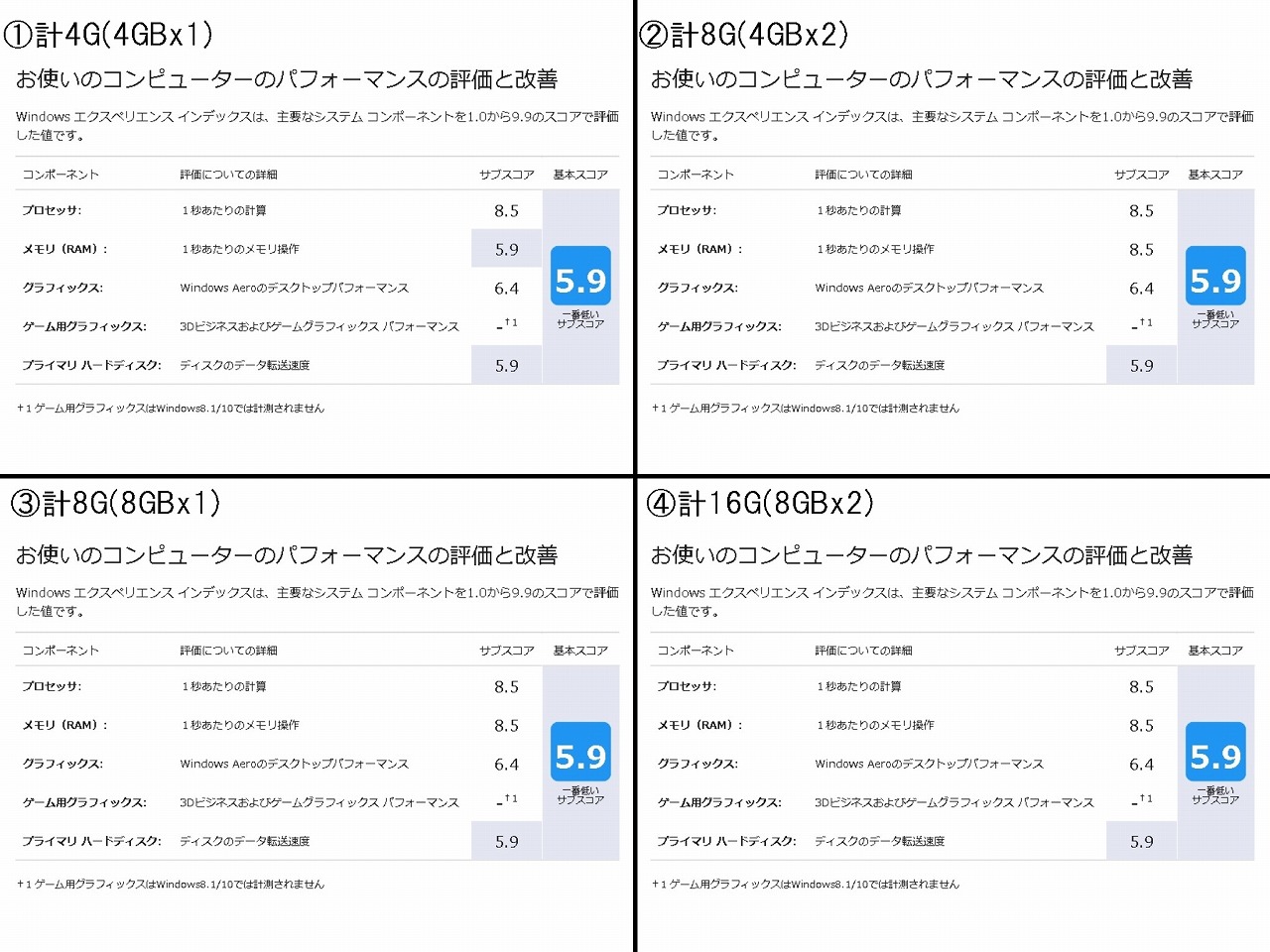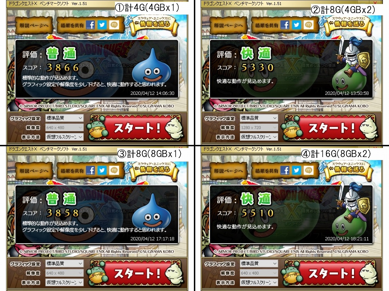 | ④計16G(8GBx2) | 5510 | 快適 |
