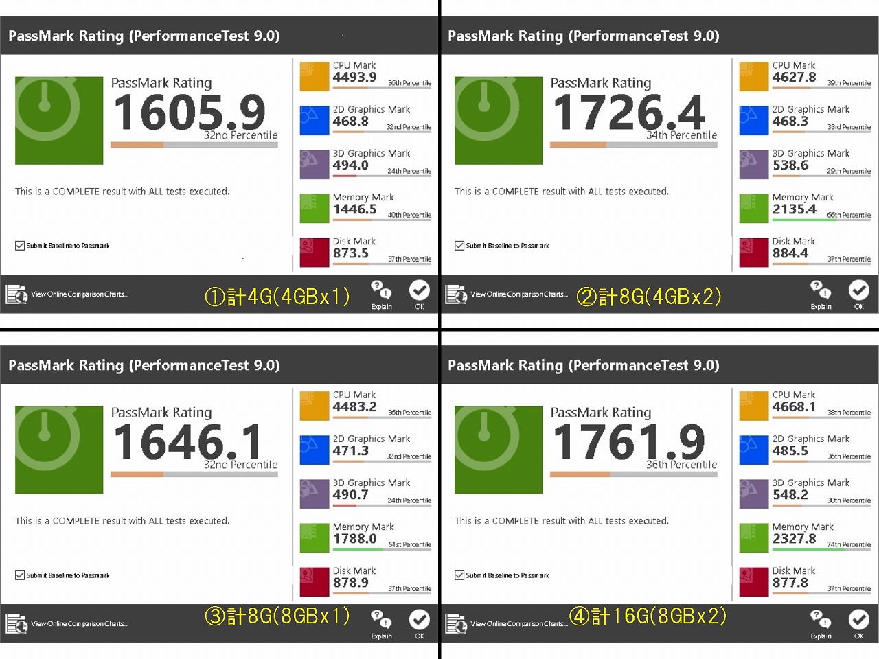| ④計16G(8GBx2) | 2652 | やや快適 |