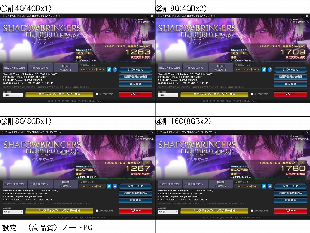 | 5 | FF14ベンチ | 高品質/標準品質のフルスクリーンモードで実施 |