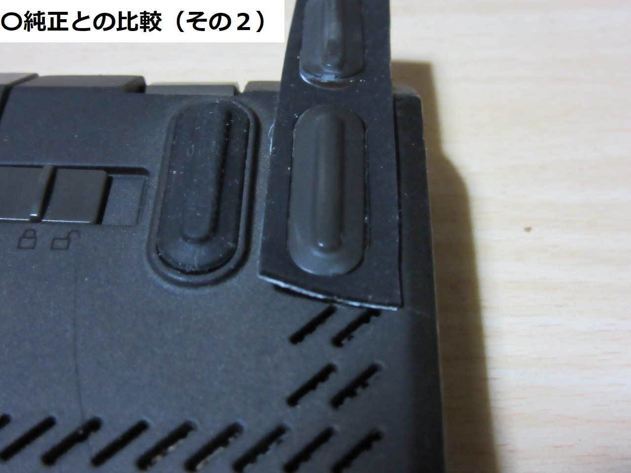 one's way > PC(ハード) > 【Lenovo x240】改造計画(その4)ゴム足の交換 【Lenovo x240】改造計画(その4)ゴム足の交換 PC(ハード) 2020年12月30日 最終更新日:2020/12/30 2020年も後1日で終わろうとしている中、Lenovo ThinkPad x240の改造計画第4弾です。 今回がこの改造計画の一応最終なのですが、一番ショボい内容でゴム足の交換です・・・。 又、改造と言うよりは、正確には修理と言った方が良いのかも知れません。 しかしながら長時間の作業の際や、底面の保護には比較的重要な枠目を果たしているかと思っています。 実際、中古やジャンクを見ても、このゴム足が取れてるのは良く見ますしね。 (仕事でも多数のPCを見ていますが、個人的にはどのような使い方をしたら剥がれるのかと思います・・) 〇交換前後の状態 0.目次 1.購入動機 2.到着までの日数 3.検品 4.交換(換装)作業 5.評価 6.まとめ 1.購入動機 冒頭で述べた通り、元々x240のゴム足は4つなのですが、(左前部分の)1つは無くなっており、残り3つも劣化でチビッていました。 そんな状況で長時間作業をしたり、移動の際に机に置いた際には底面に直接当たるので傷等も付きやすくなります。 そこでゴム足の交換をと思った次第です。 〇購入した商品(Aliexpress) ・4個ゴム足足レノボthinkpad T450 L440 T440s X230s X240s X240 X250ノートパソコンの足底ケース 2.到着までの日数 注文から到着まで約26日でした。 〇輸送方法 ・Logistics: China Post Registered Air Mail 尚、残念ながらキーボードやタッチパッドの時と違い、追跡番号が付かないので追跡は出来ません。 ※一番送料が安いのにしたので・・ それでも26日で到着なら早い方と思います。 3.検品 梱包状態です。 鼠色のビニール製の袋に入っています。 〇梱包状態 今回は予備も含めて3セット購入しましたが、中を開けるともう1つビニールに入った袋が購入した3セット入っています。 ※1セットは4個入りですので、合計12個 それでよく見るとですが、少しですが斜めになっていました・・。 このあたりの当たり外れは中国製の雑なところですかね。。。 〇ゴム足の一部 物はシール形式になっているので、台紙から剥がせば粘着テープがあるので、そのまま交換すれば良いだけです。 4.交換(換装)作業 単純に、ゴム足が無いところは清掃後に貼り付けて、ゴム足があったところは一度剥がして貼り付けるだけです。 尚、x200の頃と違い、前後でゴムの形状が異なるとかではありません。 〇作業前の比較例(その1) ※前部足との比較 〇作業前の比較例(その2) ※後部足との比較 注意点としては、元のゴム足の粘着が結構あるので剥がす際には怪我等に注意しましょう。 又、斜めになっているのを許容する際は方向を揃えると多少は良さそうです。 〇貼付け例 ・前2か所:外向きか内向きで合わせる ・後ろ2か所:同一方向に合わせる では、実際に作業した一部の画像です。 〇装着例 こんな感じになりました。 〇経過報告 交換して約1週間様子をみていますが、現在のところは問題ありません。 何かあれば追記します。 5.評価 〇良い点 ・国内で買うより安い 〇悪い点 ・製品に当たり外れがある →当方の今回の様に斜めになっている事がある ・安くしようと追跡番号の無い配送方法を使うと、少し時間が掛かる →まぁ自己責任なんですが・・ 6.まとめ 最初は取れている1つだけ交換しようかと思ったのですが、元の劣化したゴム足と違い過ぎたので全部交換しました。 見栄えを考えたら、4つ全てを交換した方が良いでしょう。 ※妥協するか否かなだけなんですが・・ 後は、余裕が有れば天板やキーボード部のベゼルも交換したいところなのですが、まだまだ使えるのでそこはまた先の話で・・。 (どうせ持ち運べば傷等は付きますしね・・) 以上 〇更新履歴 2020/12/30 初版 タグもどき:Leonovo ThinkPad X240 ゴム足 交換作業 PR