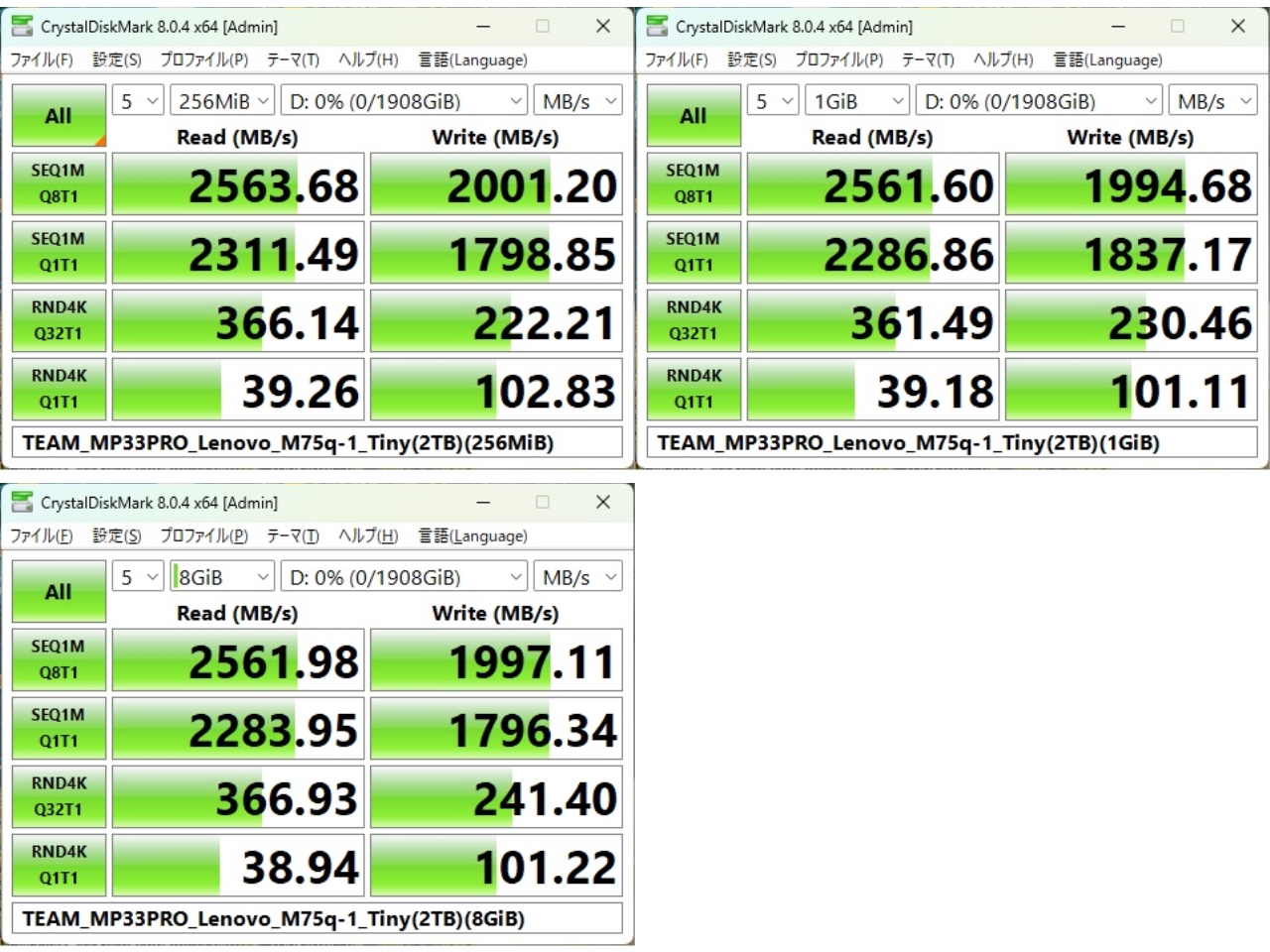 | 備考 | 本製品は比較的熱目との事でしたが、M75q-1 Tinyでは追加でヒートシンクを装着出来ないのでそのままで確認 |