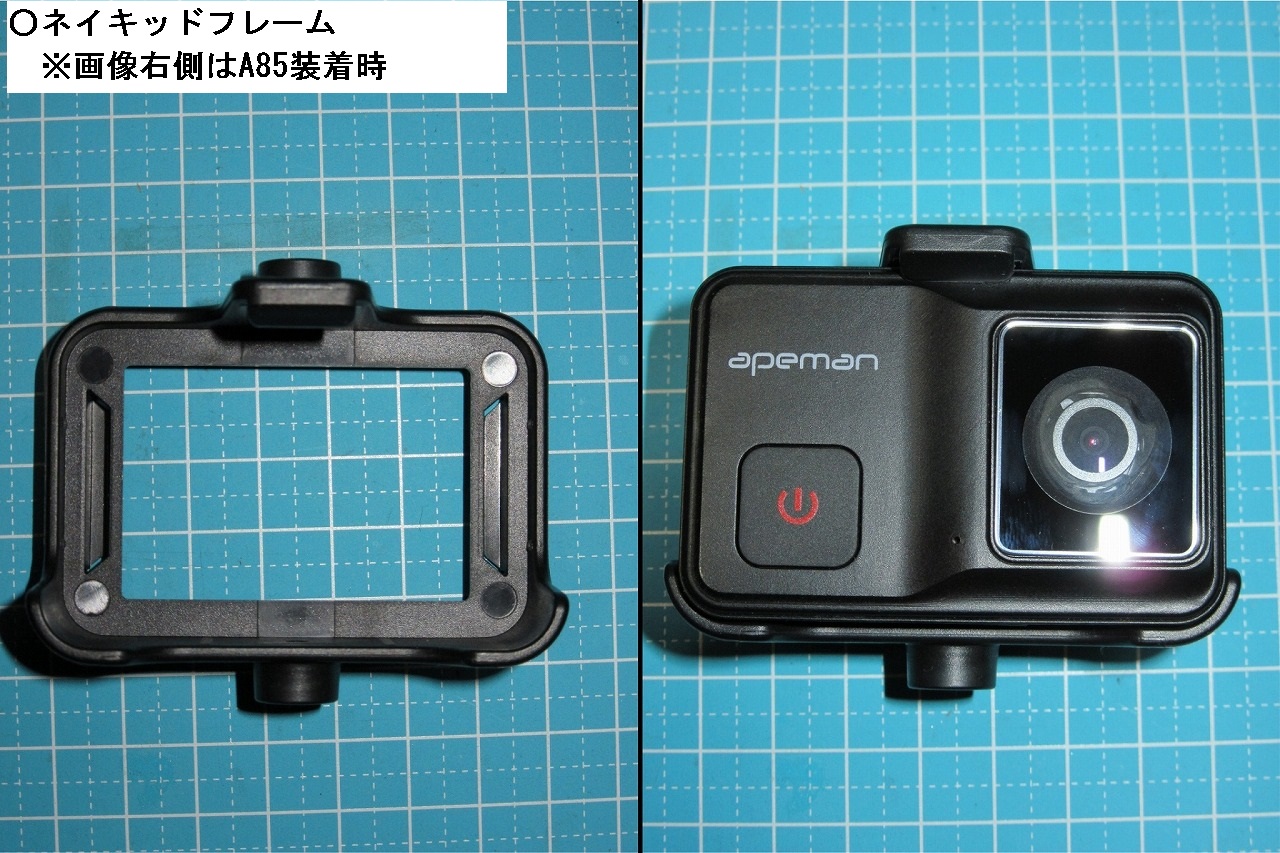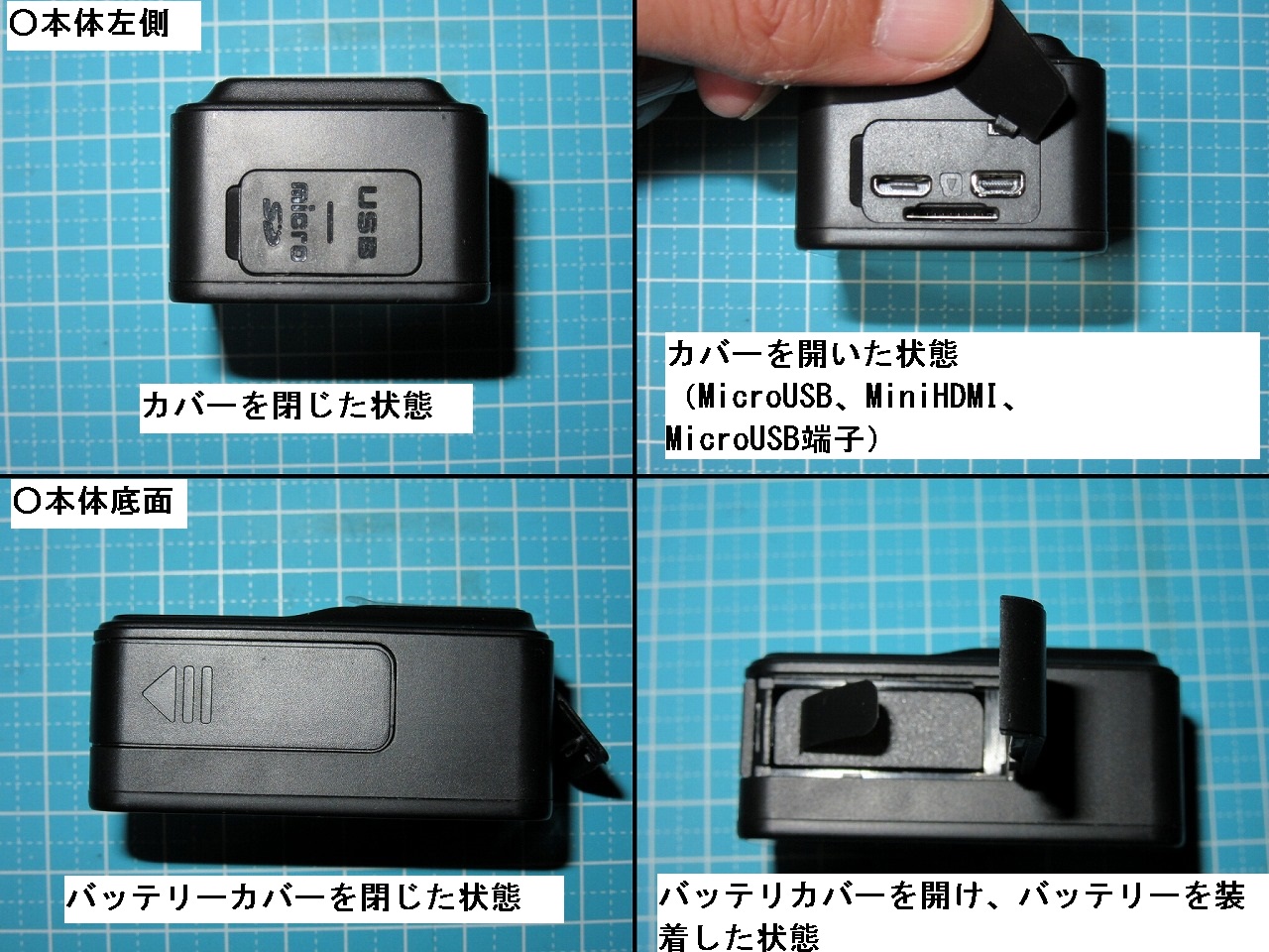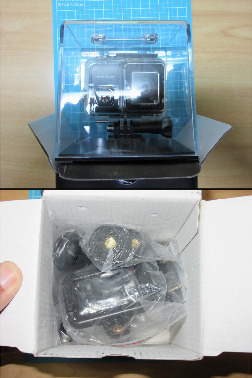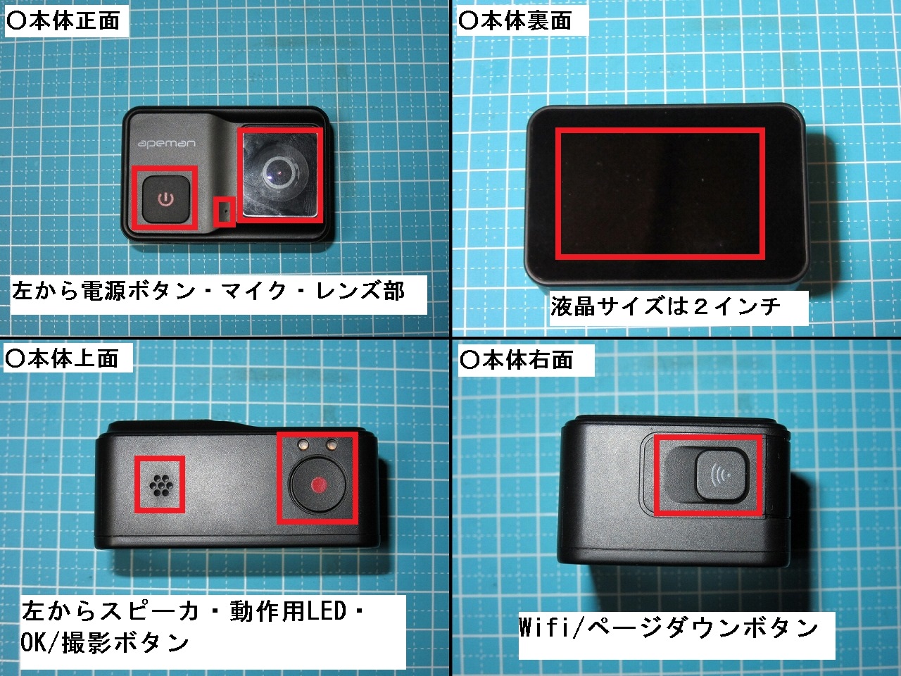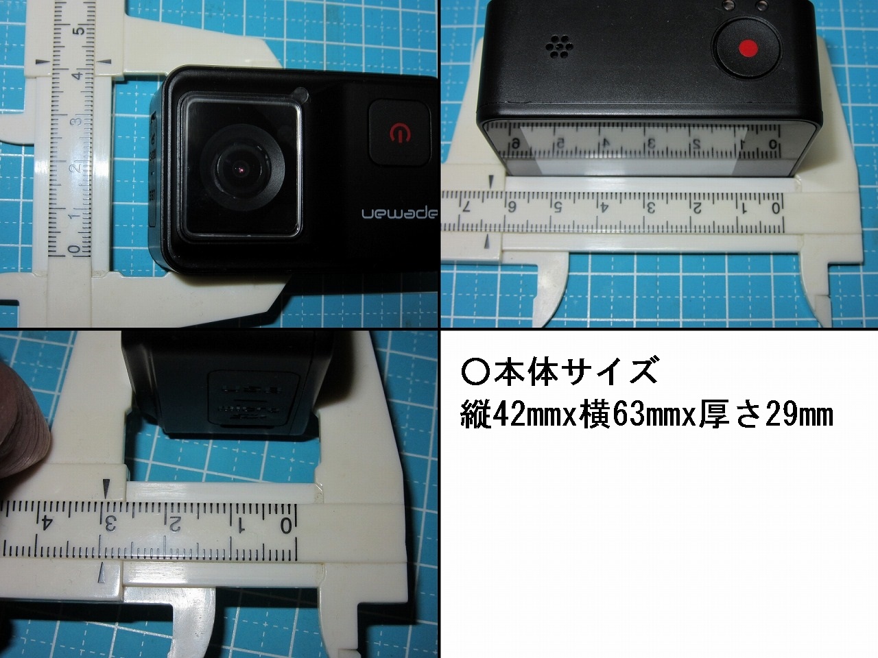| その他 | ・防水ケース使用時の防水はIP68で約30m ・日時保持用バッテリー搭載 ・ネイキッドフレーム付属(本体には三脚用ネジ穴無し) ・車載モード無し ・デジタルズーム無し ・PC接続時にはUSBストレージ又はWebカメラとして使用可能 ※Windows10のみでWindows7は確認中 ・リモコンは付属しない |