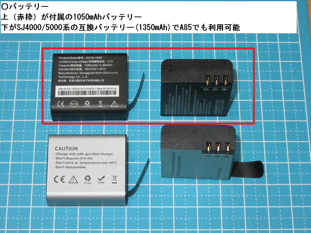 | バッテリー | 1050mAh x2本付属 ※SJ4000/5000系互換バッテリーが使用可能 |