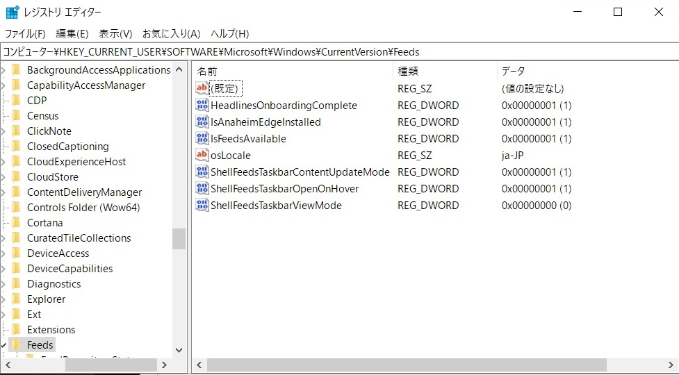 | HKEY_CURRENT_USER\SOFTWARE\Microsoft\Windows\CurrentVersion\Feeds |