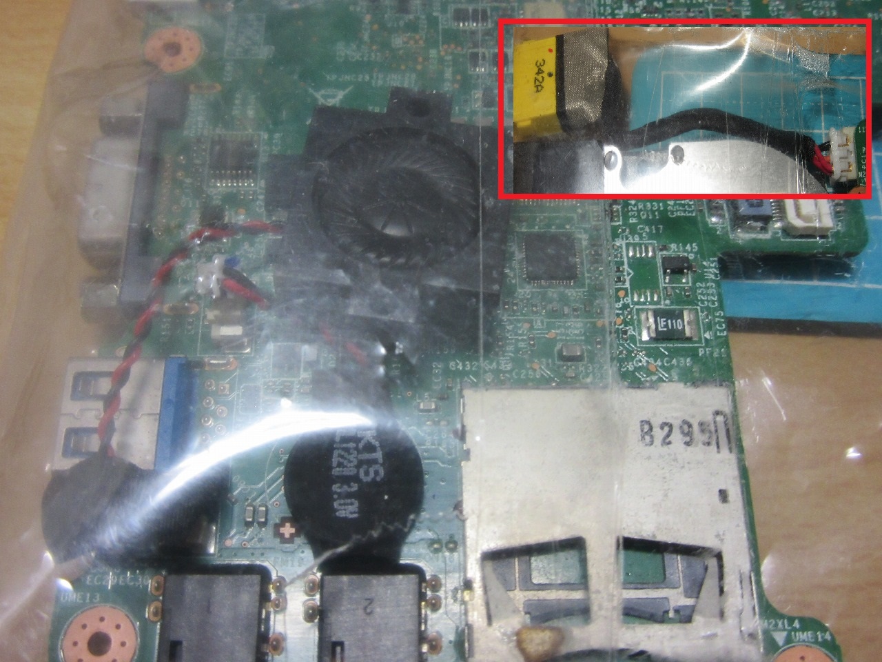【ジャンク】500円で購入のNECノートPC(PC-VK26MBZCF)のシステムボード? ジャンクハンター 2020年12月22日 最終更新日:2020/12/22 先月に購入したジャンク品の備忘録です。 久しぶりに某ジャンクコーナを回った際、当方にとっては見慣れた特徴的な形状をしているシステムボードを発見しました! 場所はハードオフの青箱(ジャンク品)の中。 〇システムボード(裏面) この特徴的な形状からNECのVersapro VK26M/B系の物では無いかと思い購入してしまいました。 お値段は550円(税込み)です。 〇システムボード(表面) 一応、システムボードに(i5)と記載があるのと、それ以外に電源コネクター端子・CMOS電池・スピーカー・ともう1つ気になる物が付いていたので、購入した次第です。 (丁度、CMOS電池が1台切れていた為) 〇付属品 そして気になる物がこちら。 サブ基盤(正式名は不明で当方が勝手に命名)です。 有線LANとUSB(2.0)x2端子ですが、当方の所持している個体と微妙に異なる部分が・・ おそらくですがオプションであるDocomo Xi(クロッシー)用で使用する、SIMカードの挿入口と思います。 〇サブ基盤(今回入手した物) 〇参考(過去の記事より) ※過去の記事はこちら ・NECノートPC VK26M/B-F(PC-VK26MBZCF)本体分解方法(その3:システムボードを取り出すまで) と言う訳で昔入手した物には実装されていない部分ですね。 (まぁ今さら使うのか?と言うのがあるのですが・・・) このあたりは部品取りとして入手し、実際1台のCMOSバッテリーを交換して使えたのでヨシとしています(笑 残念なのは他の部分も(出来ればジャンクに落ちる前に)見てみたかった・・ 以上 〇更新履歴 ・2020/12/22 初版 タグもどき:NEC PC-VK26MBZCF VK26M/B-F VersaPro 解説 分解 ジャンク