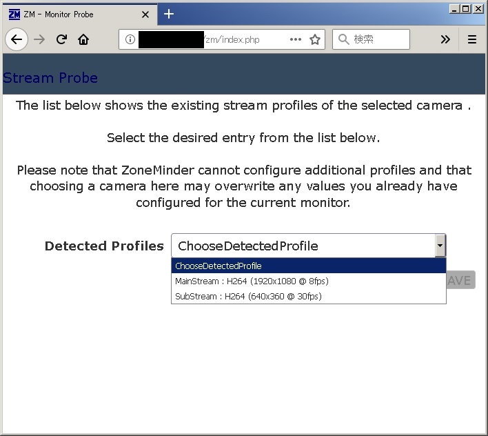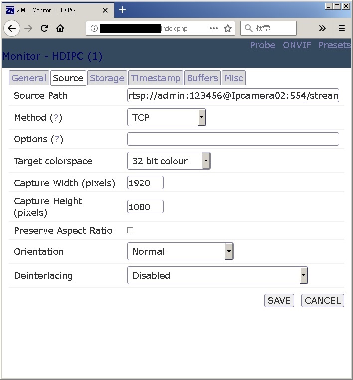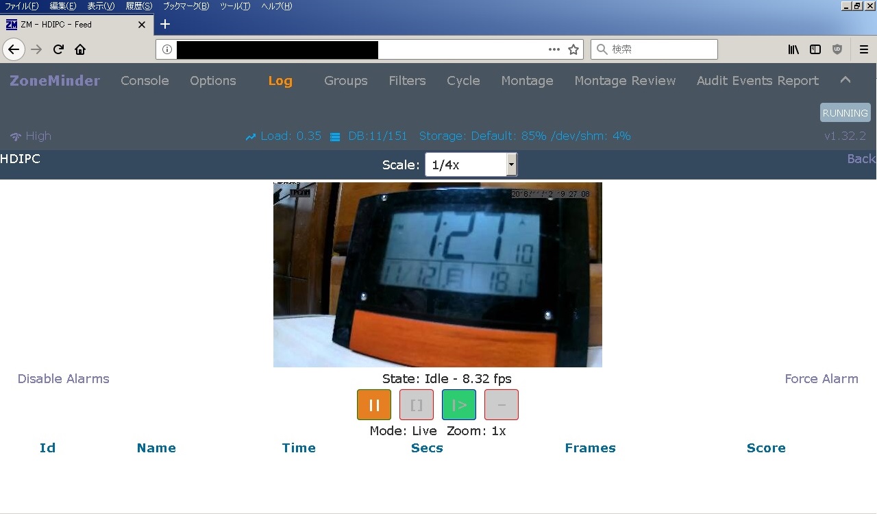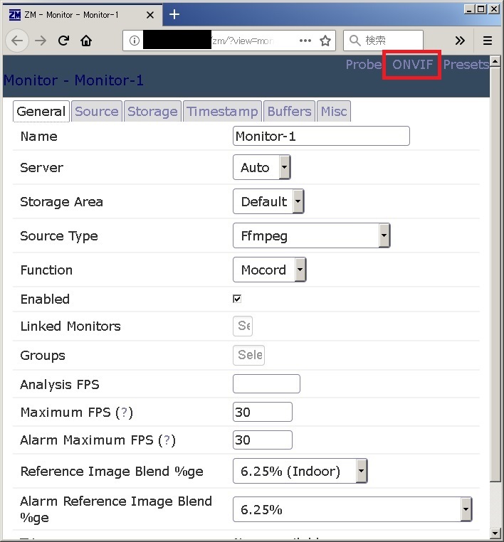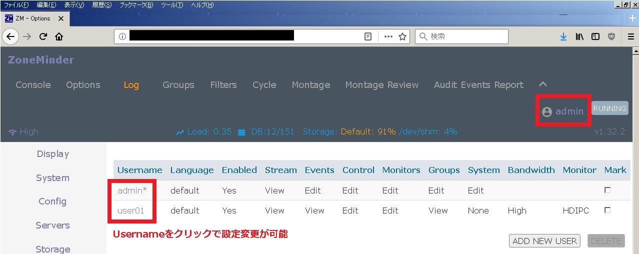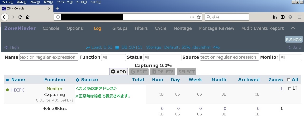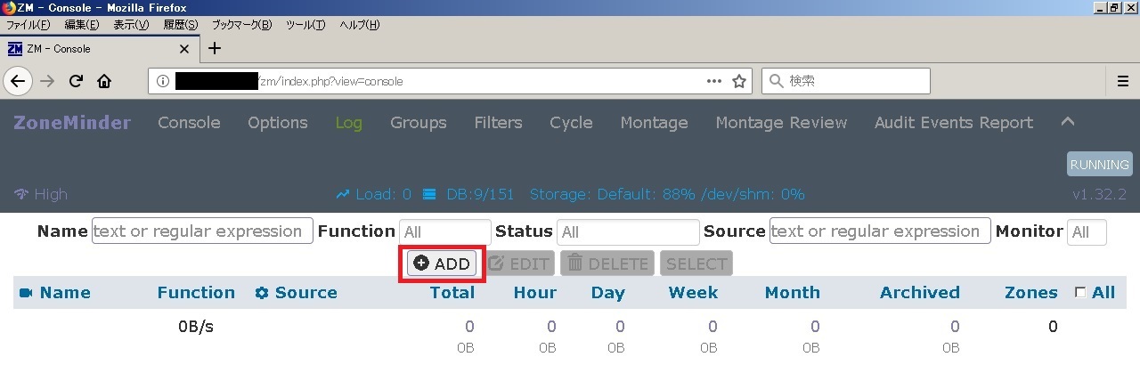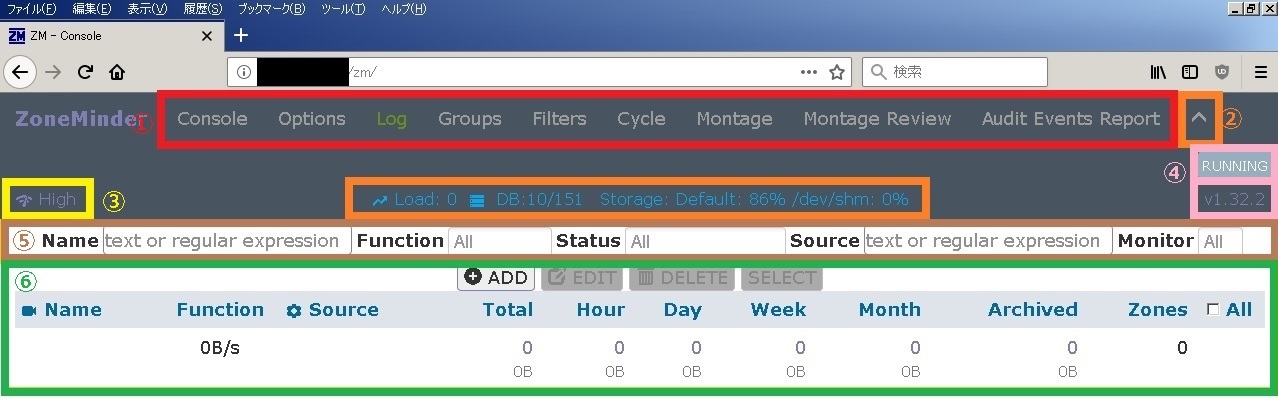| Options | ZoneMinder全体の設定画面を表示 |