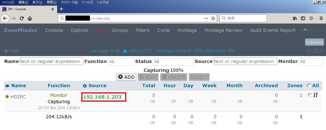 | Zoneminderサーバ | 192.168.1.128 |