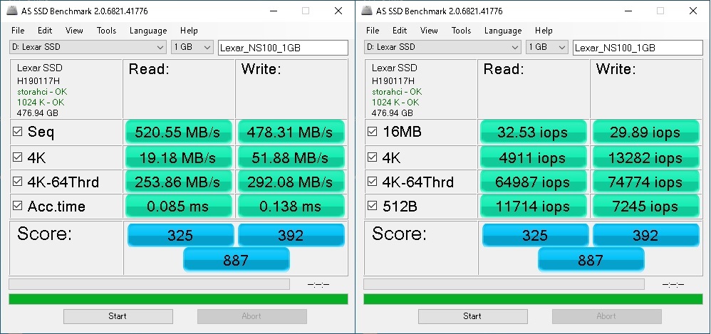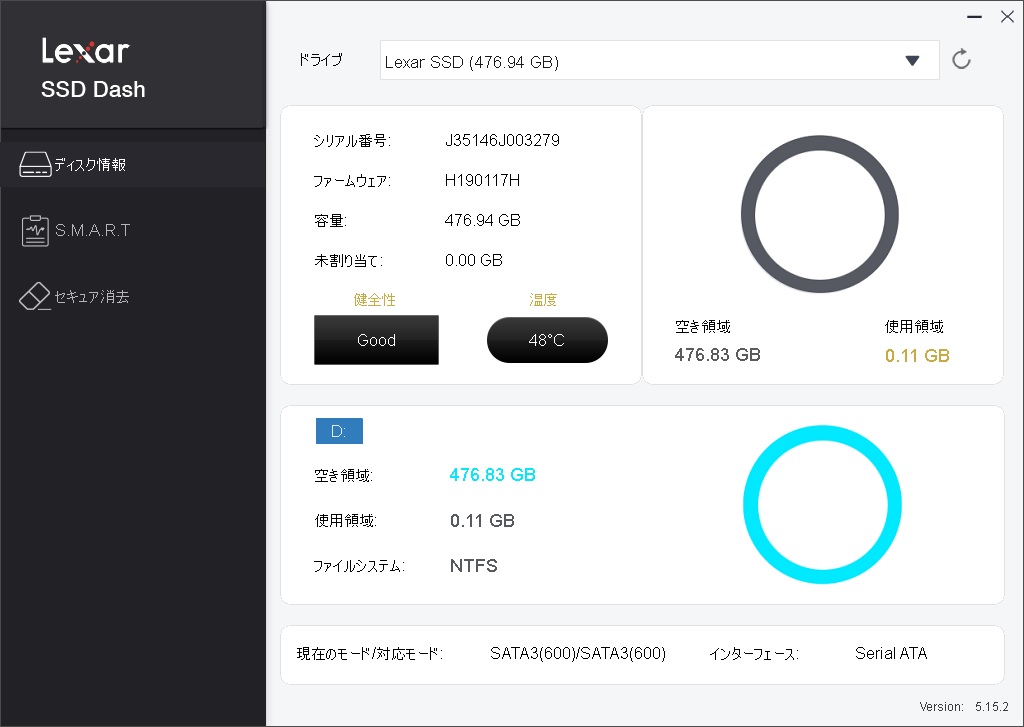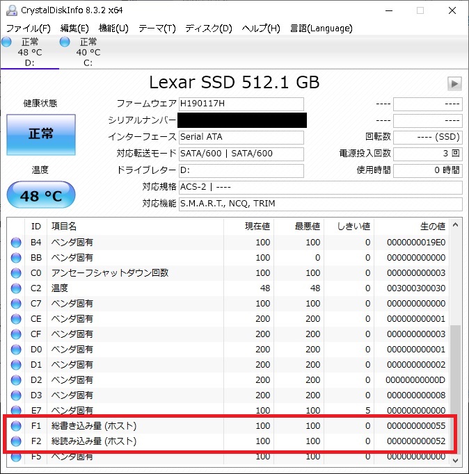 DISK構成 | (C)Sandisk SDMSATA256G(mSATA) ※システム (D)本製品 Lexar NS100(LNS100-512RBJP) |
